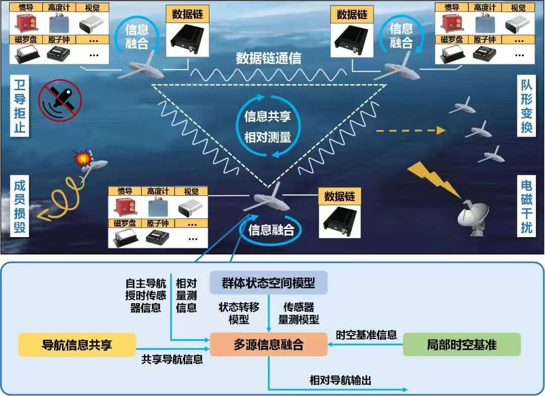 简介:无人机集群作战正逐渐成为未来智能化战争的重要手段。相对导航能够为无人机集群提供不依赖卫星的相对定位与授时信息,支撑机群完成协同作战任务,是卫星导航拒止下无人机集群作战的核心技术。项目以群体导航建模、交互策略设计、分布式信息融合、时空基准优化为研究方向,提升相对导航精确性、灵活性、可靠性,为卫导拒止下无人机集群协同作战提供导航支撑。