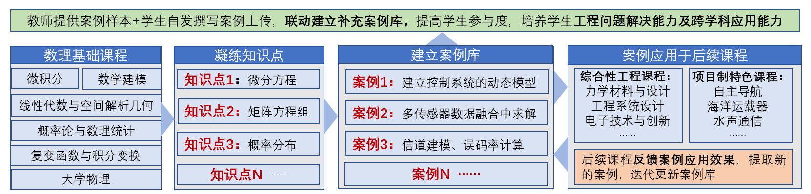 针对传统数学教学中长期存在的“理论推导与工程实践脱节、学科应用牵引薄弱”的痛点问题,对微积分、线性代数等核心课程进行“问题导向型”模块化重构,按电路系统建模等工程领域需求重组知识单元,构建实用型案例库,该案例库强化了数学原理的应用背景,深化学生“数理-工程”双向思维能力,形成了“数学工具-工程问题”双向映射的知识迁移闭环,重点培育学生双向思维能力,构建起支撑复合型工科人才系统创新能力培养的“聚理融工”数学基础教育新范式。